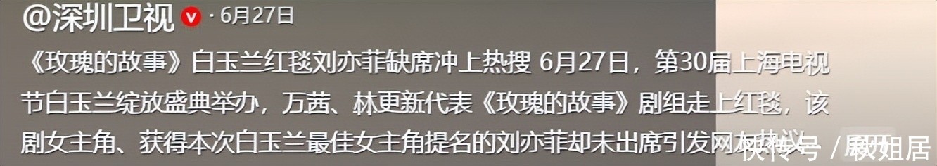 部分参考资料新京报|刘亦菲从金鹰奖投票名单中消失杭州网|向太回忆岁刘亦菲光明日报|赵立坚:刘亦菲发了力撑港警的文章,她就是当代的花木兰杭州日报|“刘亦菲 今茜是何年”热搜第一,VOGUE造型瞬间梦岁“白秀珠”深圳卫视|《玫瑰的故事》白玉兰红毯刘亦菲缺席冲上热搜